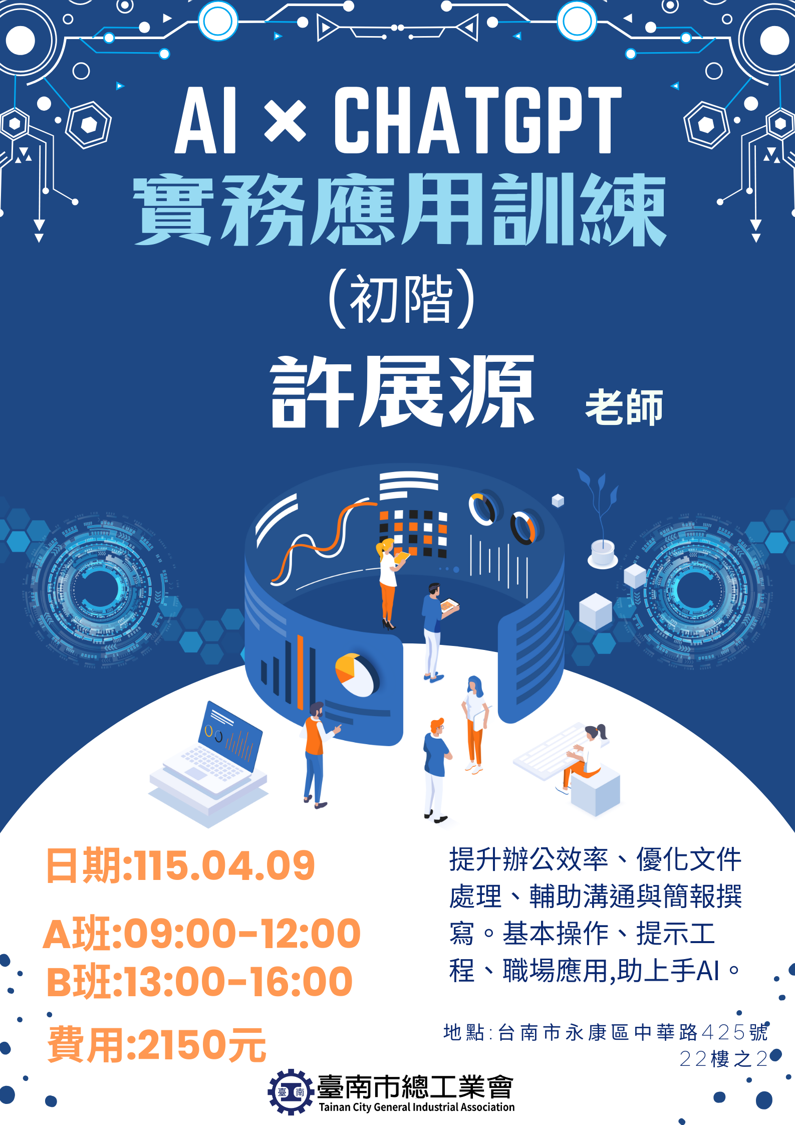 ★上課地點:臺南市永康區中華路425號22樓之2(臺南市總工業會)